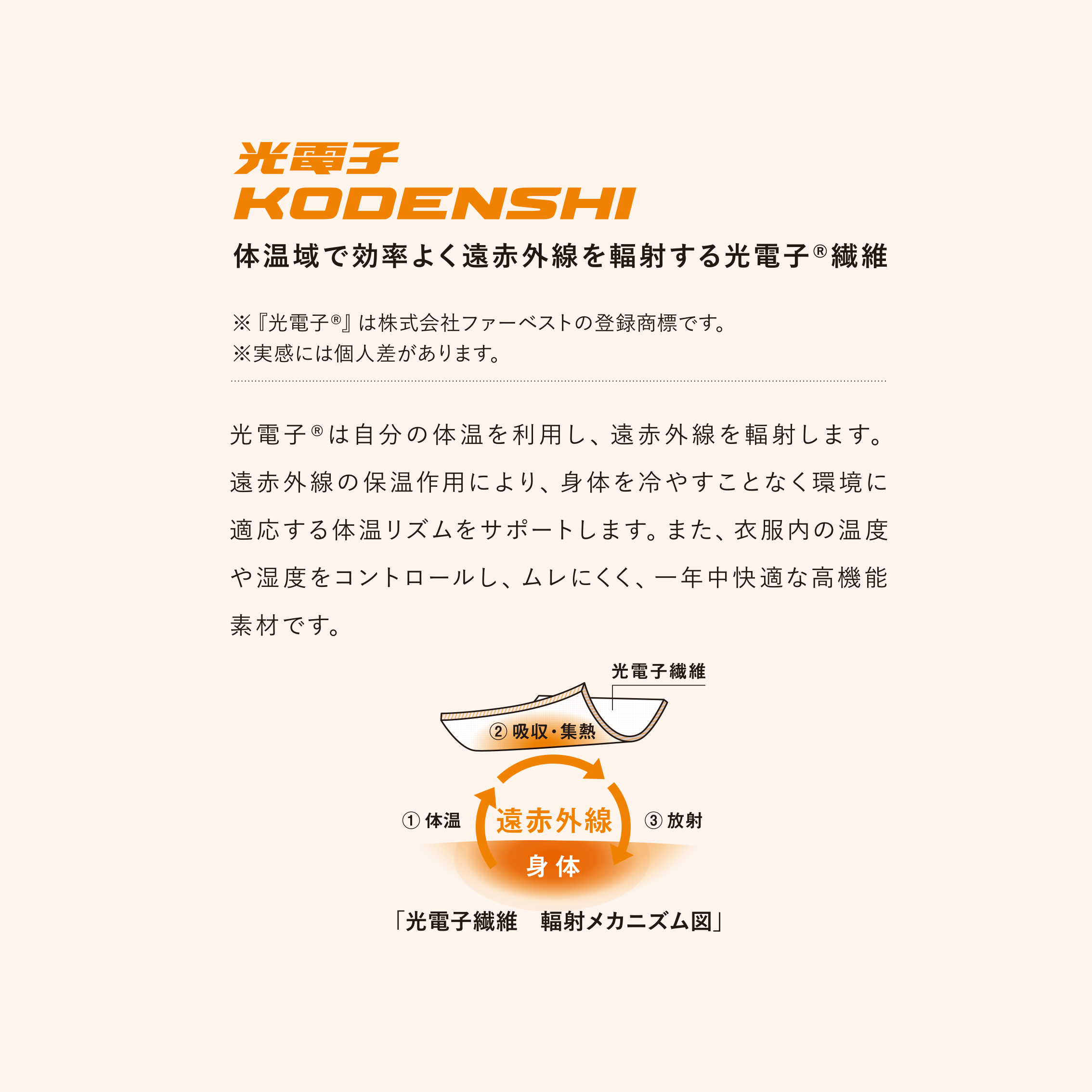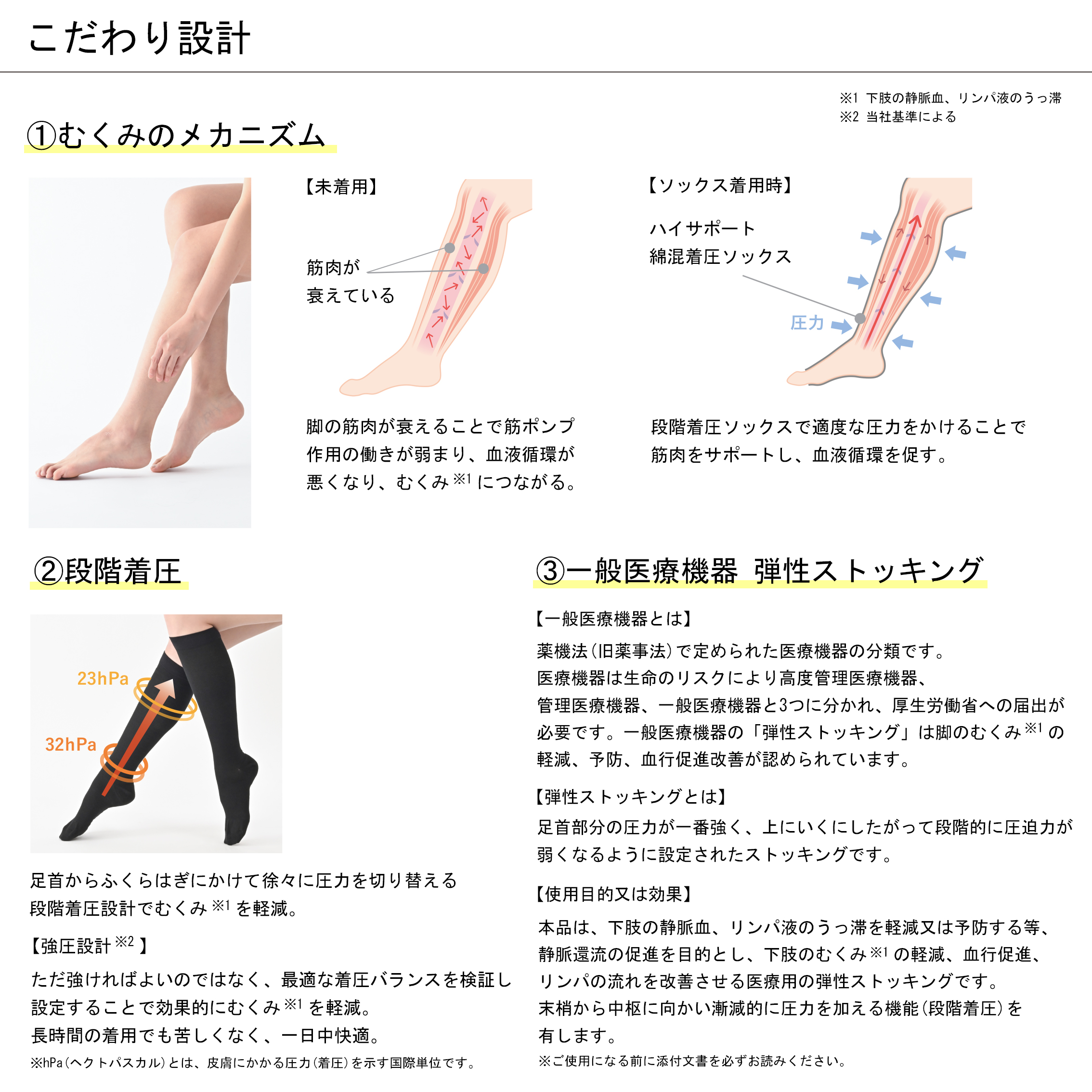 一般医療機器による段階着圧設計でむくみ*¹を軽減し光電子®で保温。